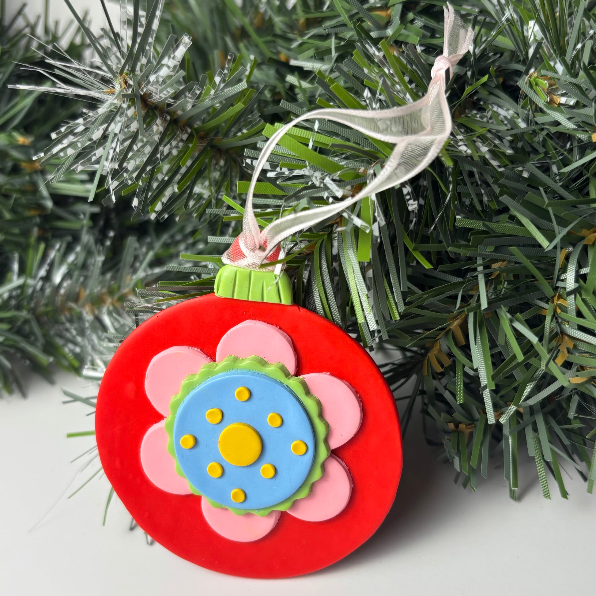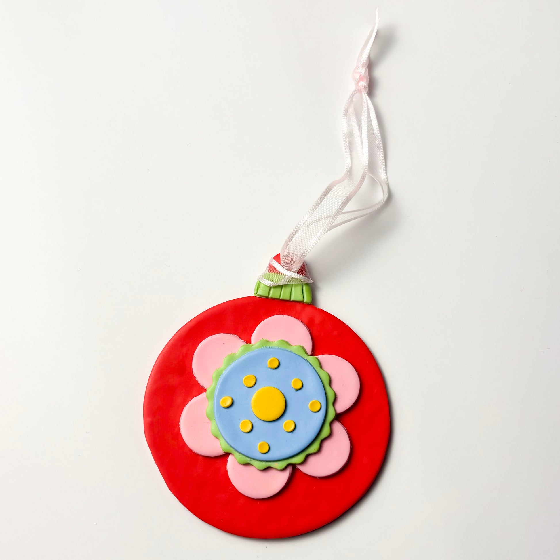 Cet ornement rond en argile polymère apporte une vibe joyeuse et ludique à votre sapin. Son fond rouge vif est décoré d’une grande fleur pastel pour un look à la fois rétro et doux. Malgré sa taille généreuse, il reste très léger et se suspend facilement grâce à son ruban délicat. Chaque pièce est façonnée à la main en petite série, ce qui en fait une décoration unique à offrir ou à s’offrir pour illuminer le temps des Fêtes.