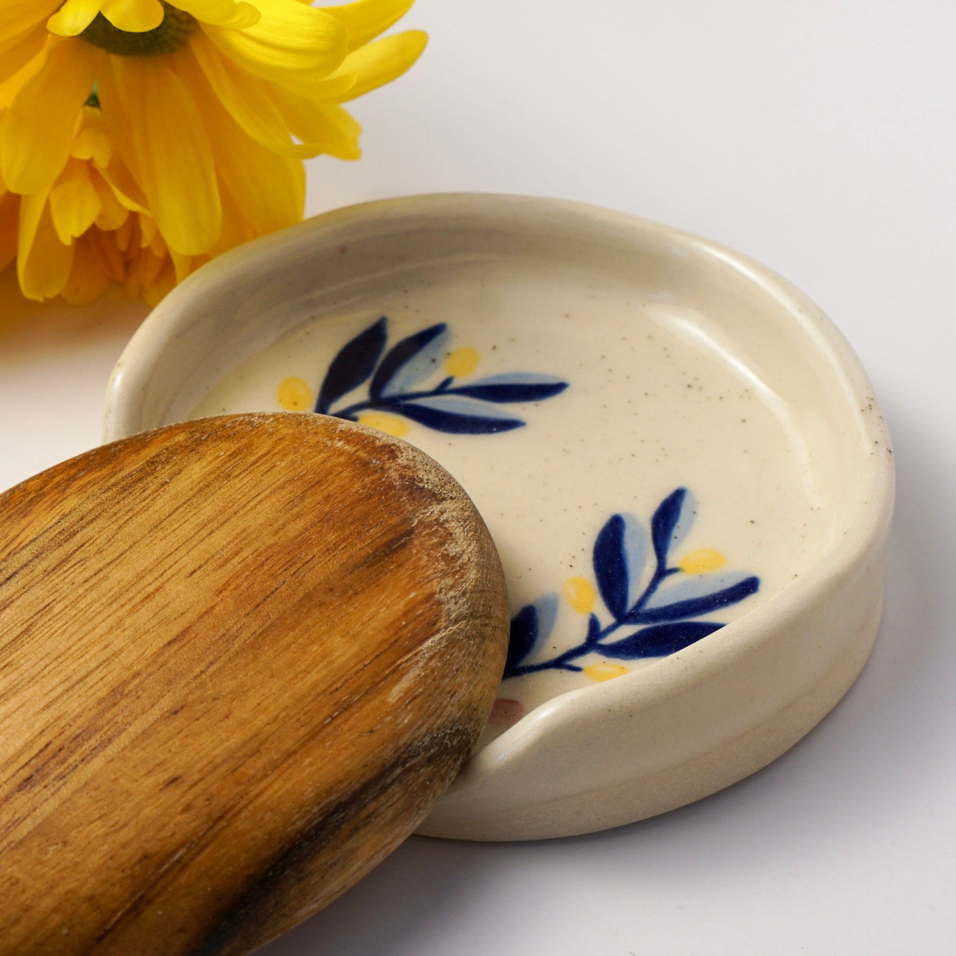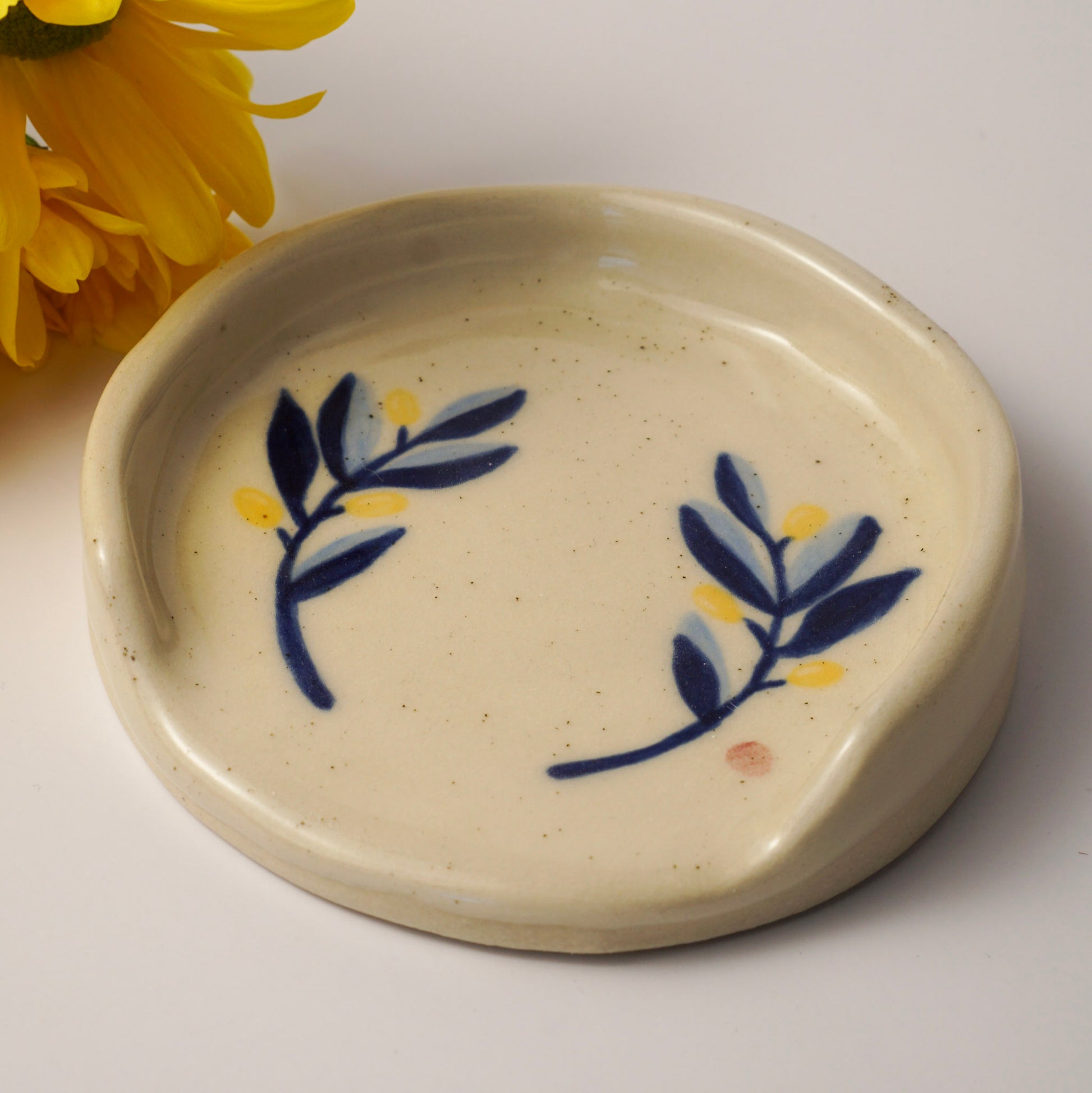 Un souffle méditerranéen s’invite dans votre cuisine avec ce repose-cuillère en céramique orné de délicates branches d’olivier peintes à la main. Inspiré par la nature et la douceur du sud, il apporte une note raffinée et chaleureuse à votre espace culinaire.