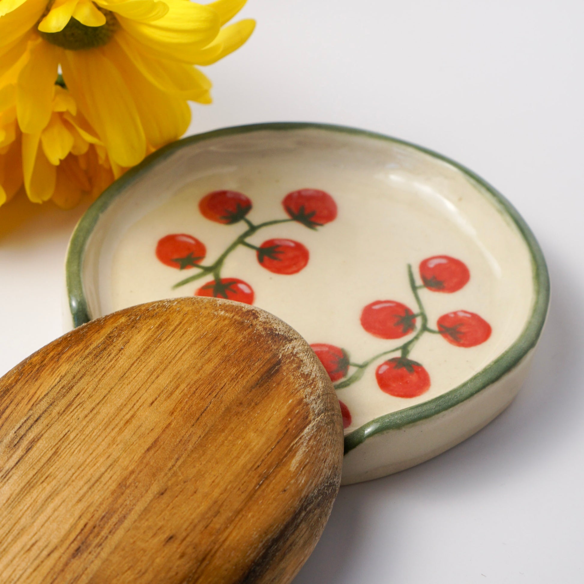 Un soupçon de soleil et de bonne humeur s’invite dans votre cuisine avec ce repose-cuillère décoré de tomates peintes à la main. Véritable clin d’œil à l’été et aux plaisirs simples, il allie praticité et charme artisanal.